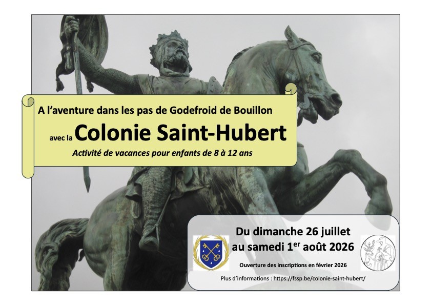 La FSSP organise en Belgique pendant l’été 2026 une colonie de vacances pour les enfants de 8 à 12 ans, du dimanche 26 juillet au samedi 1er août, au Collège Notre-Dame au Coeur d’Or (près de Saint-Hubert).